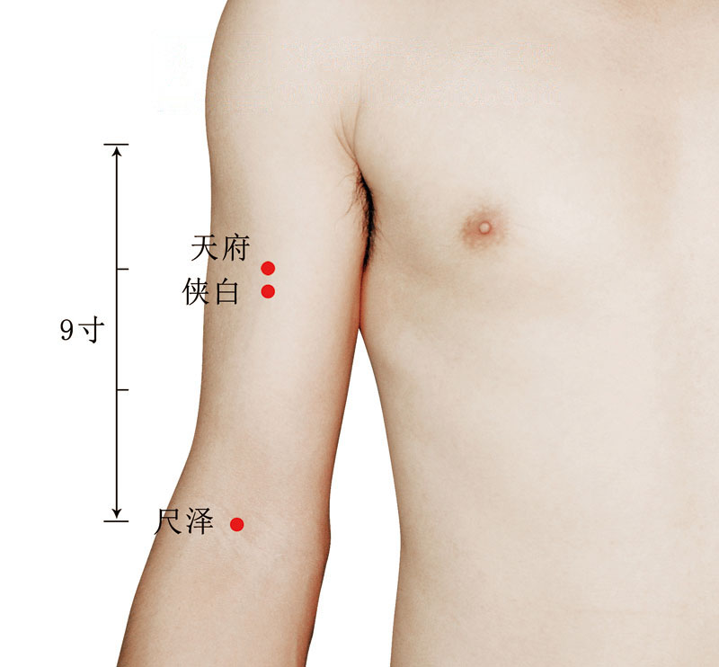 在臂内侧面,肱二头肌桡侧缘,腋前纹头下3寸处。 -