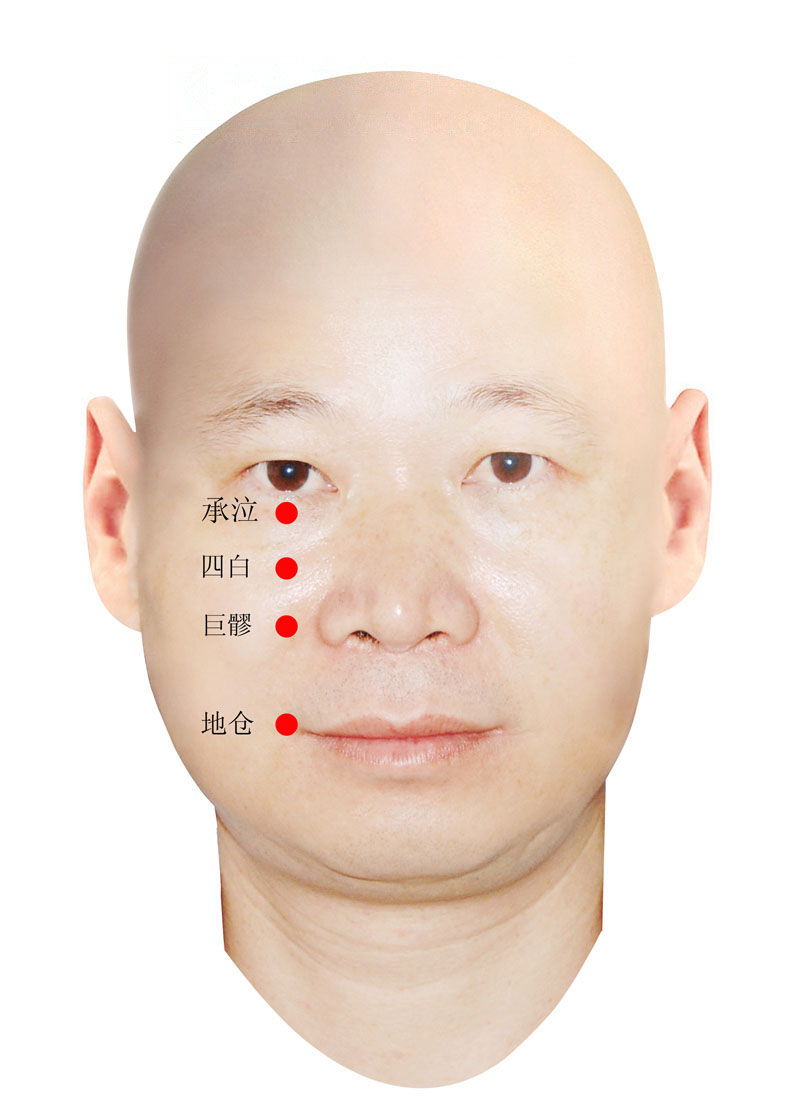 第2步:沿瞳孔垂直线向下轻推,至鼻翼下缘水平线处,即为本穴。 -