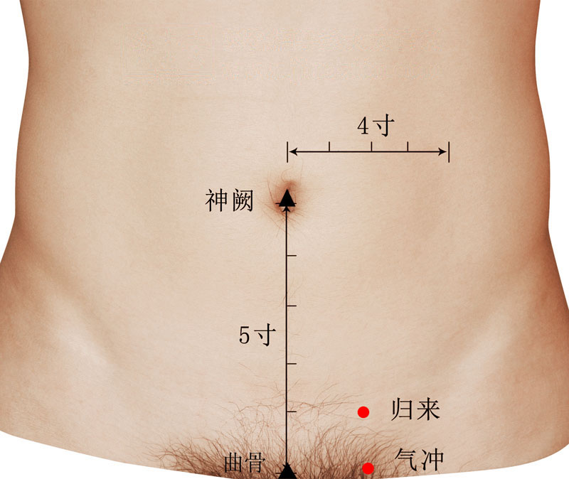 ①肠鸣腹痛;②疝气;③月经不调、不孕、阳痿、阴肿等妇科和男科疾患。 -