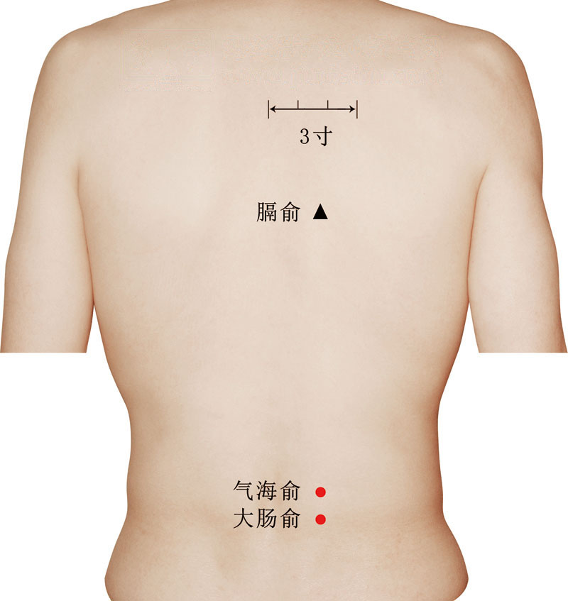 正坐或俯卧位。由第2腰椎棘突往下推1个椎体棘突(即第3腰椎棘突),从其下缘旁开量2横指,按压有酸胀感处,即为本穴。 -