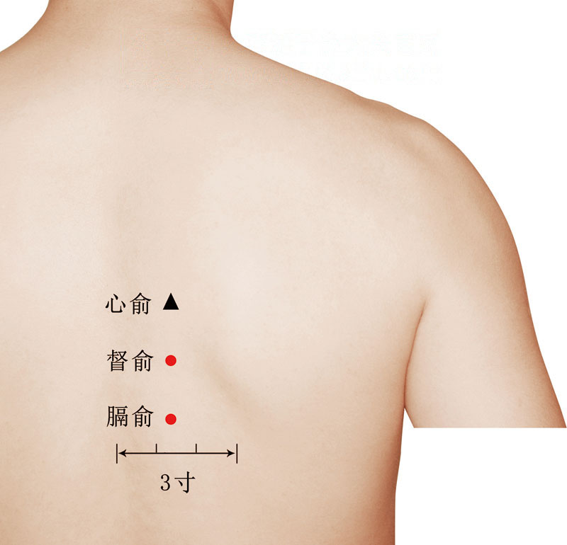 在背部,当第6胸椎棘突下,旁开1.5寸。 -
