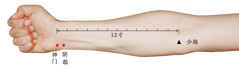 在腕部,腕掌侧横纹尺侧端,尺侧腕屈肌腱的桡侧凹陷处。 -