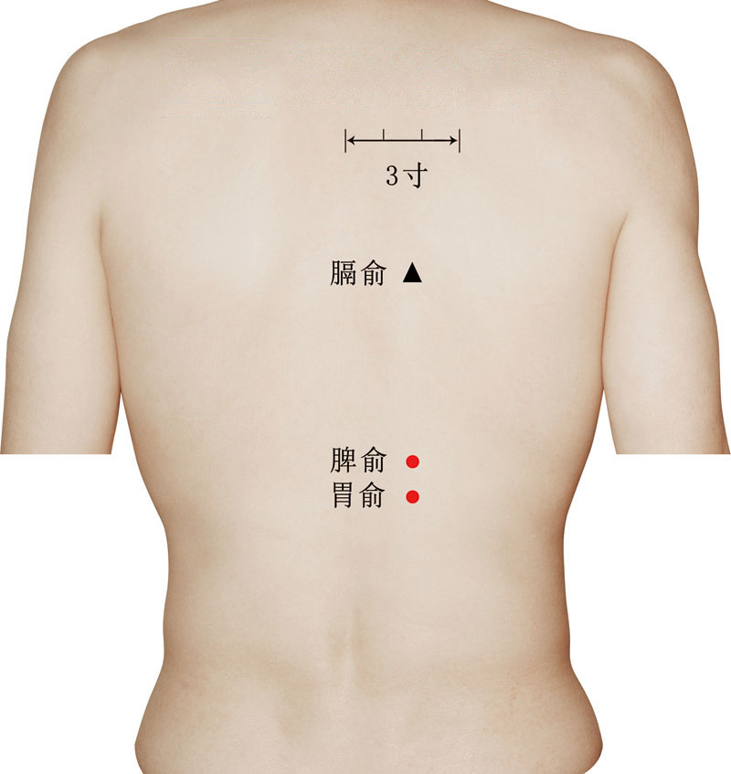 ①腹胀、腹泻、呕吐、痢疾、便血等脾胃肠腑病证;②背痛;③肾下垂,月经不调,糖尿病,肾炎,小儿夜盲,荨麻疹。 -