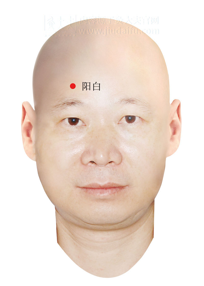 第2步:自瞳孔直上,眉毛上量1横指(大拇指指间关节部位的横径为1寸)处,即为本穴。 -