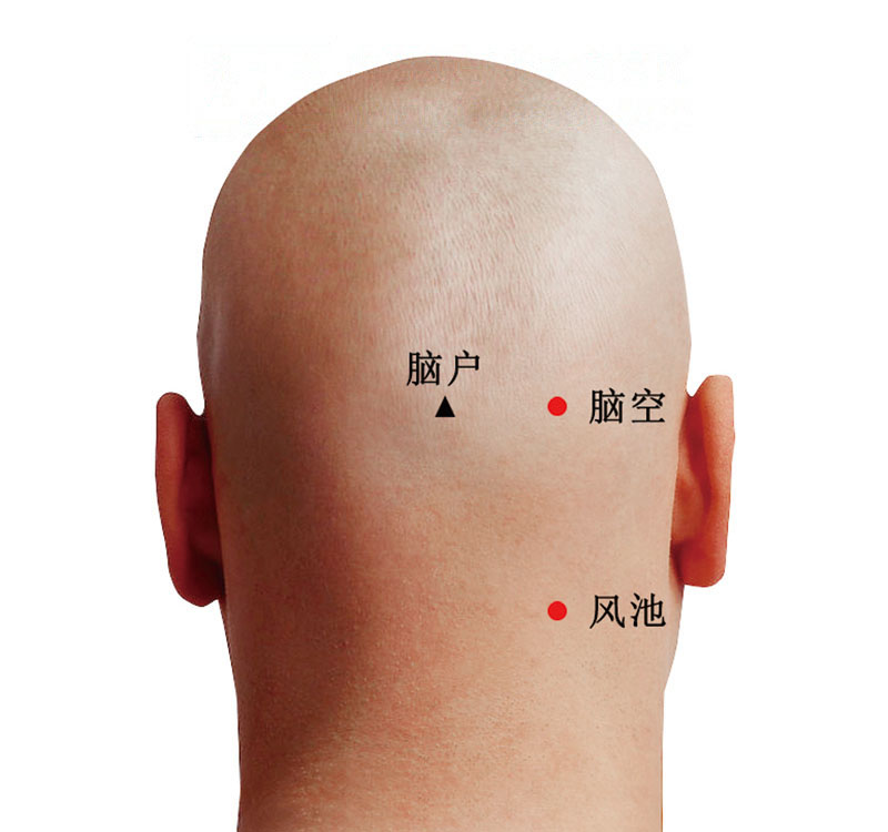 第2步:在后头骨下两条大筋外缘有两凹陷;
