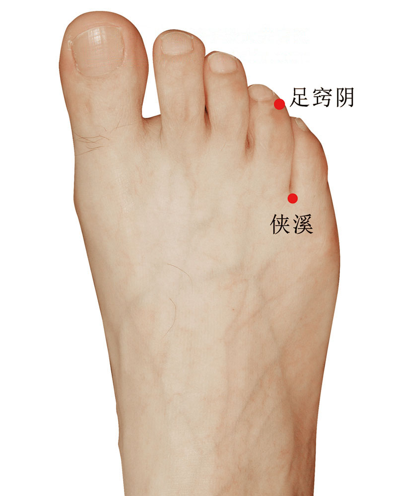 在足背外侧,当第4、5趾间,趾蹼缘后方赤白肉际处。 -