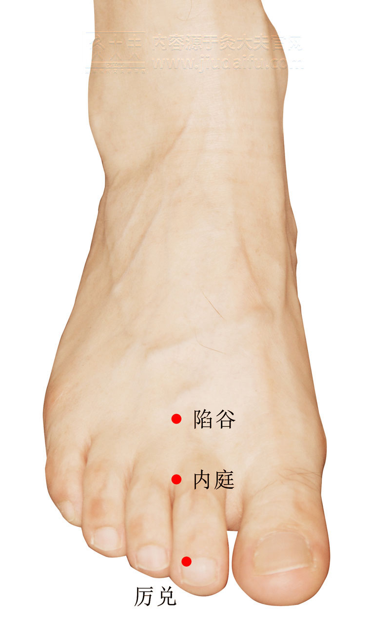 现代常用于治疗急慢性胃炎、急慢性肠炎、齿龈炎、扁桃体炎、跖趾关节痛等。配合谷主治牙龈肿痛;配太冲、曲池、大椎等主治热病。 -